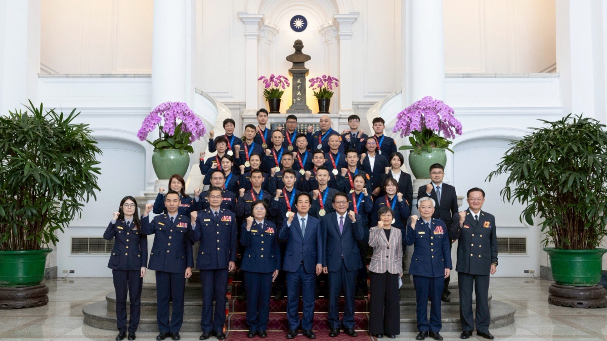 賴清德總統今(10/27)日上午接見「2025年第21屆世界警察消防運動會」代表團,肯定代表團摘下74金、46銀、48銅,締造歷屆最好成績,展現「台灣尚勇」精神。期盼未來持續發揮專業及實力,積極維護國人生命財產安全,讓社會變得更好。
