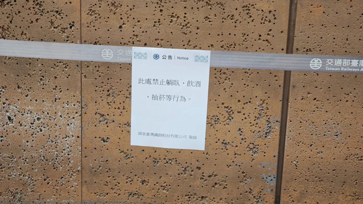 台北車站10月9日發生性侵案。一名通緝犯喬裝成街友,竟強抓醉倒女子性侵,過程長達10分鐘無人制止,外籍旅客察覺有異才報警。案件這兩天曝光後,鐵路警察加強巡邏,有民眾直擊,昨天還看到一堆街友躺著睡覺得位置,今已拉起封鎖線,並貼出禁止躺臥飲酒、飲酒等行為,感嘆「破洞的社會安全網終於要補了嗎?」