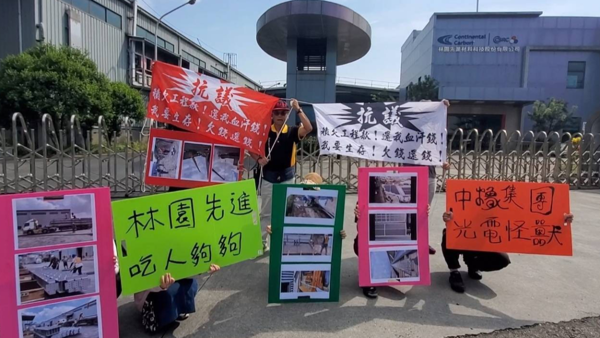 台泥集團子公司中橡旗下的林園先進材料科技爆出工程款爭議,承攬其太陽光電統包工程的包商武伽開發公司,今天(10/17)再度率領工班前往抗議,痛批「林園先進 吃人夠夠」,工人表示,只想拿回血汗錢,林園先進則回應,本案已進入司法程序,「法院怎麼判,我們就怎麼做」。