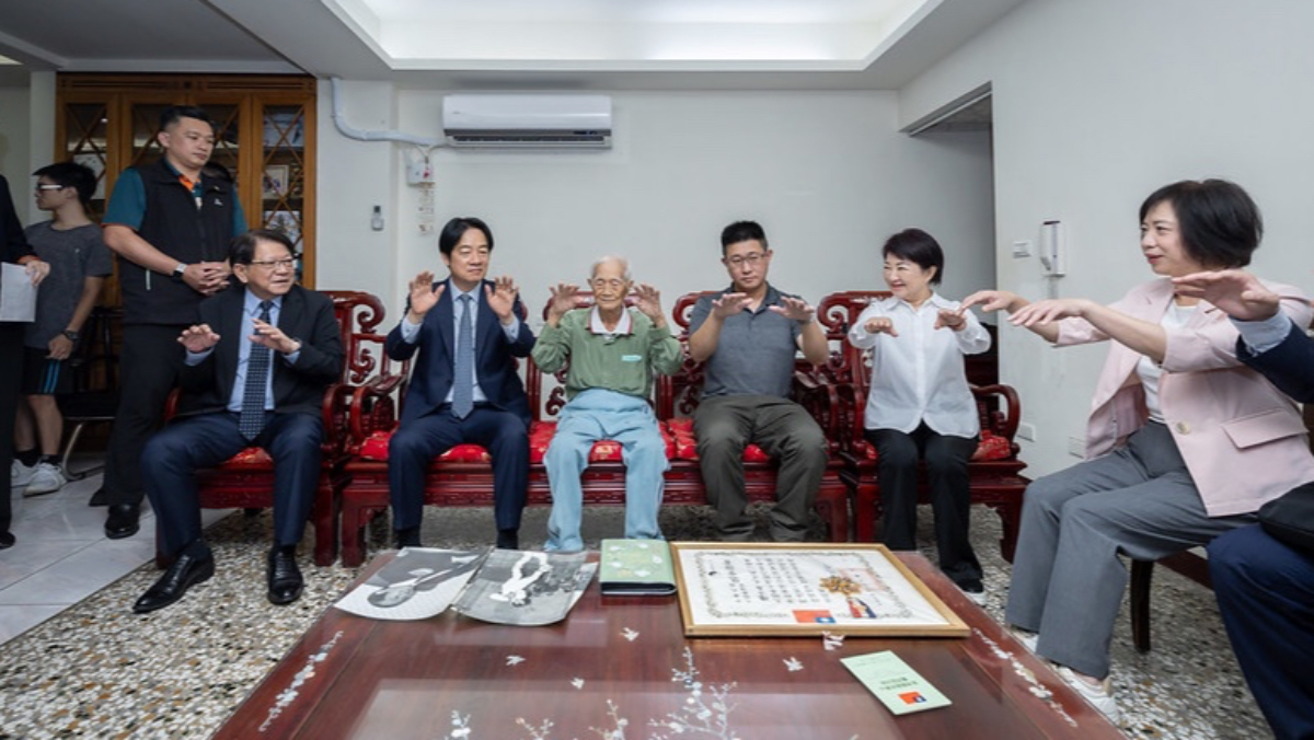重陽節將屆,總統賴清德今(10/14)日上午前往台中探望百歲人瑞洪李英嬌女士及陳活森先生,陳活森阿公年輕時開始傳授太極拳,總統也跟著阿公的口令一起練習推手、學習太極拳的精髓,並大讚人瑞阿公根本是「台灣葉問、黃飛鴻」。