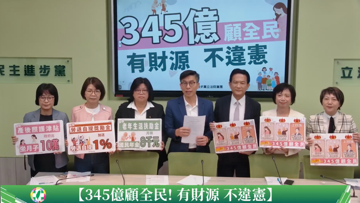 民進黨立院黨團今(10/28)提出「財政收支劃分法第十六條之一未分配款運用暫行條例草案」,將藍白強推《財劃法》卻因計算公式分母錯誤,導致看得到吃不到的345億元,用在補助弱勢族群,包括補足國保老年年金、婦女產後照護津貼10萬元,以及鼓勵勞工自願提繳退休金,加提1%等。