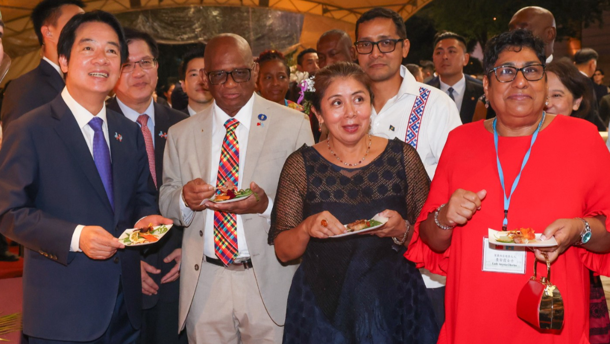 外交部舉辦的國慶酒會今(10/10)日晚間登場,由總統賴清德陪同聖露西亞總督查爾斯(Cyril Errol Melchiades Charles)與貝里斯總督察芙拉(Dame Froyla Tzalam)一同品嚐今晚特別準備的台灣在地美食,賴清德特別提到查爾斯,因為喜歡台灣茶,特別準備了烏龍茶口味的冰淇淋。