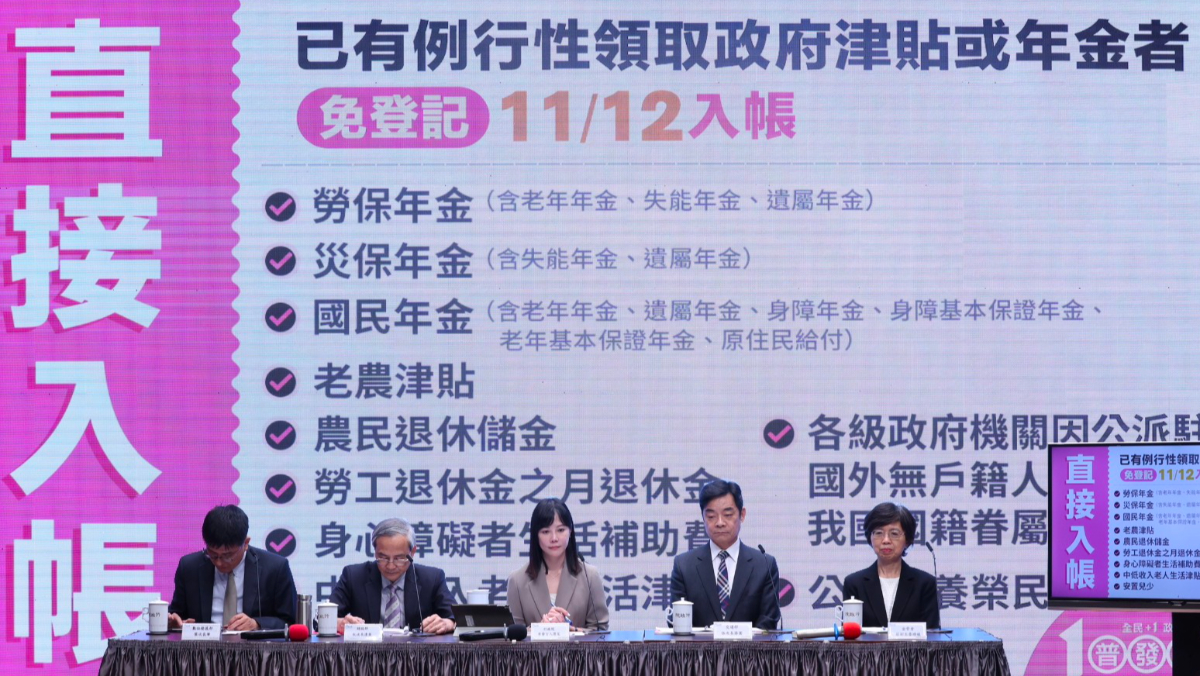 總統府今(10/23)公告中央政府因應國際情勢強化經濟社會及民生國安韌性特別預算案,行政院晚間舉行記者會指出,普發現金共5個發放管道包含登記入帳、ATM領現、郵局領現、直接入帳以及造冊發放,登記入帳預計11月5日開放預登記,最快11月12日入袋,《太報》整理懶人包,一次看懂領取資格、流程與時程。