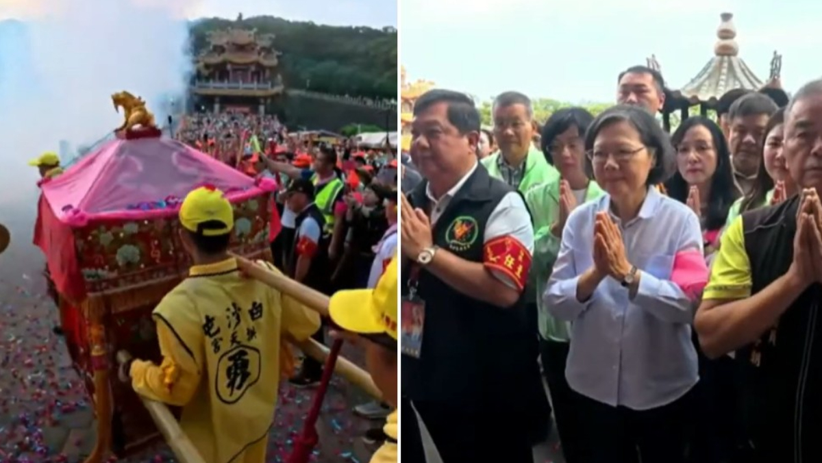 苗栗白沙屯拱天宮媽祖今天(4/20)清晨6時起駕回宮,一路急行軍,許多政治人物也前往接駕。新北市長參選人蘇巧慧、前總統蔡英文、苗栗縣長參選人陳品安等人今天清晨6時步行前往苗栗通霄慈后宮接駕,另外台東縣長參選人陳瑩、立委莊瑞雄、吳沛憶,及多位縣市議員一同參拜,接著眾人徒步進香,前往通霄秋茂園前空地,見證媽祖鑾轎換乘八人抬大轎的換轎儀式。