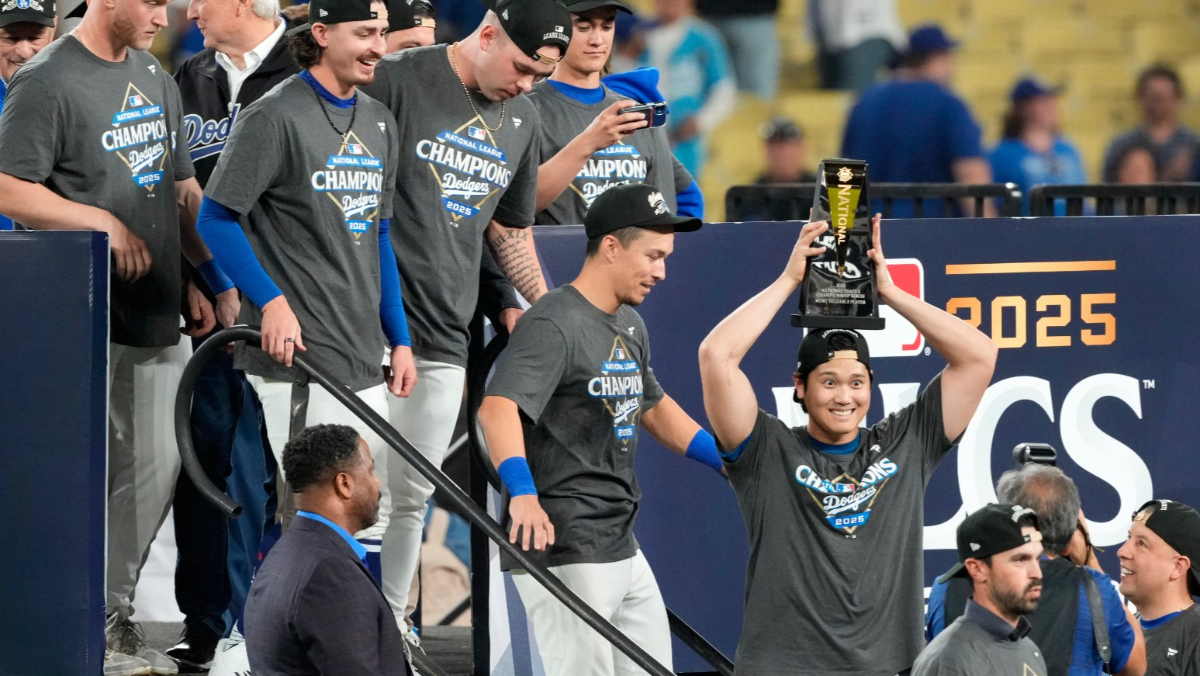 要挑戰連霸偉業的道奇連2年向世界大賽叩關,大谷在慶祝儀式上表示,「這是團隊一起贏下來的榮譽,我只是代表大家領取,後續還有4場比賽,我們會全力取勝,今天大家好好喝一杯吧!」