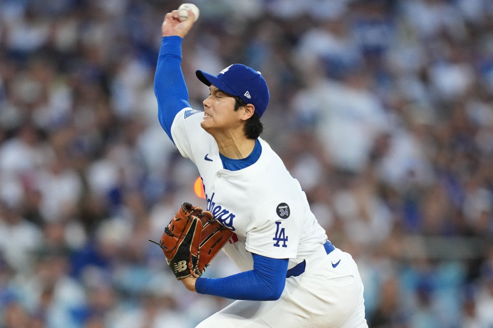 大谷翔平在國家聯盟冠軍戰G4繳出6局無失分、10K好投,拿下勝投外還成為史上首名在季後賽單場三響砲的投手。美聯社