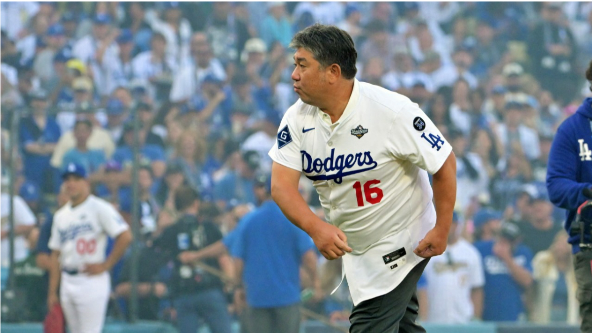現年57歲的野茂英雄,身穿當年16號球衣出場,他於1995年加盟道奇,菜鳥年奪下單季13勝,第2年再拿下16勝,前三季繳出40勝。隨後野茂輾轉待過大都會、釀酒人、老虎與紅襪,之後在2002年重返道奇。