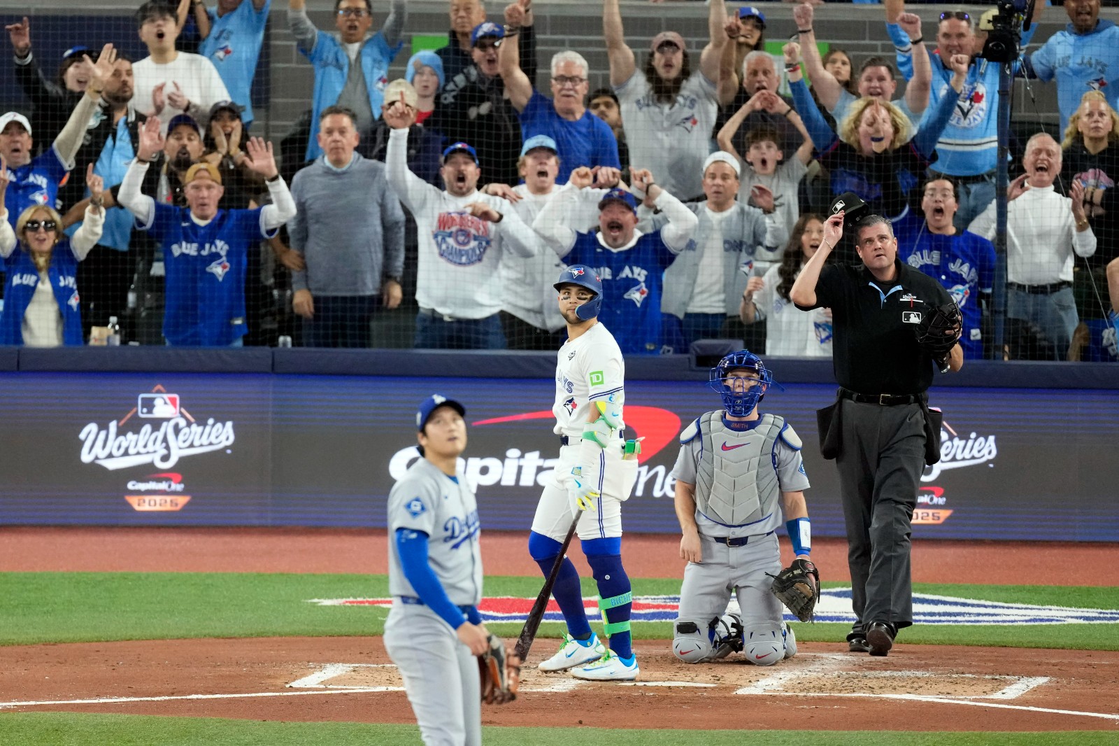 這場「贏者全拿」的最終決戰,道奇隊最終決定讓大谷翔平在休息三天的情況下再度先發上陣,首局雖被史普林格(George Springer)敲出安打,但隨即就以160公里火球三振小葛雷諾(Vladimir Guerrero Jr.),並藉雙殺守備脫險;第二局大谷一度面臨滿壘危機,不過大谷再度飄出159公里火球三振希門尼斯(Andrés Giménez),激動怒吼振臂,點燃全場氣氛。