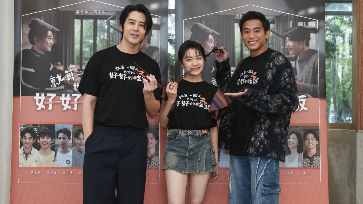 胡宇威(左起)、李玲葦、初孟軒出席《就算一個人也可以好好的吃飯2》記者會。公視+提供