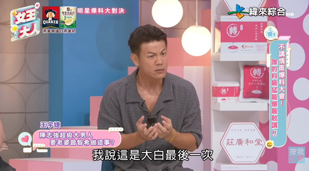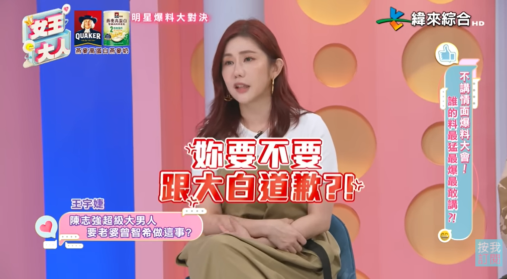 王宇婕在節目爆料陳志強的控制狂行徑。翻攝緯來綜合台Youtube
