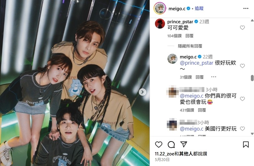 網友隨後又挖出粿粿520當天的貼文,她貼出與王子、簡廷芮、王品澔同框的合照,寫下「祝大家都能跟愛的人一起快快樂樂」,王子則在底下留言「可可愛愛」,當時看似稀鬆平常,如今成了被懷疑的「偷情端倪」,不少網友留言,「原來520就開始了」、「偷吃還這麼光明正大」、「現在看懂了!」