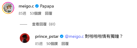 還有,王子去年3月在IG曬出一段滑雪影片,背景音樂選用ZAAC、Anitta和Tyga的〈Desce Pro Play (PA PA PA)〉,粿粿留言「Papapa」,結果王子回應「對啪啪啪情有獨鐘?」