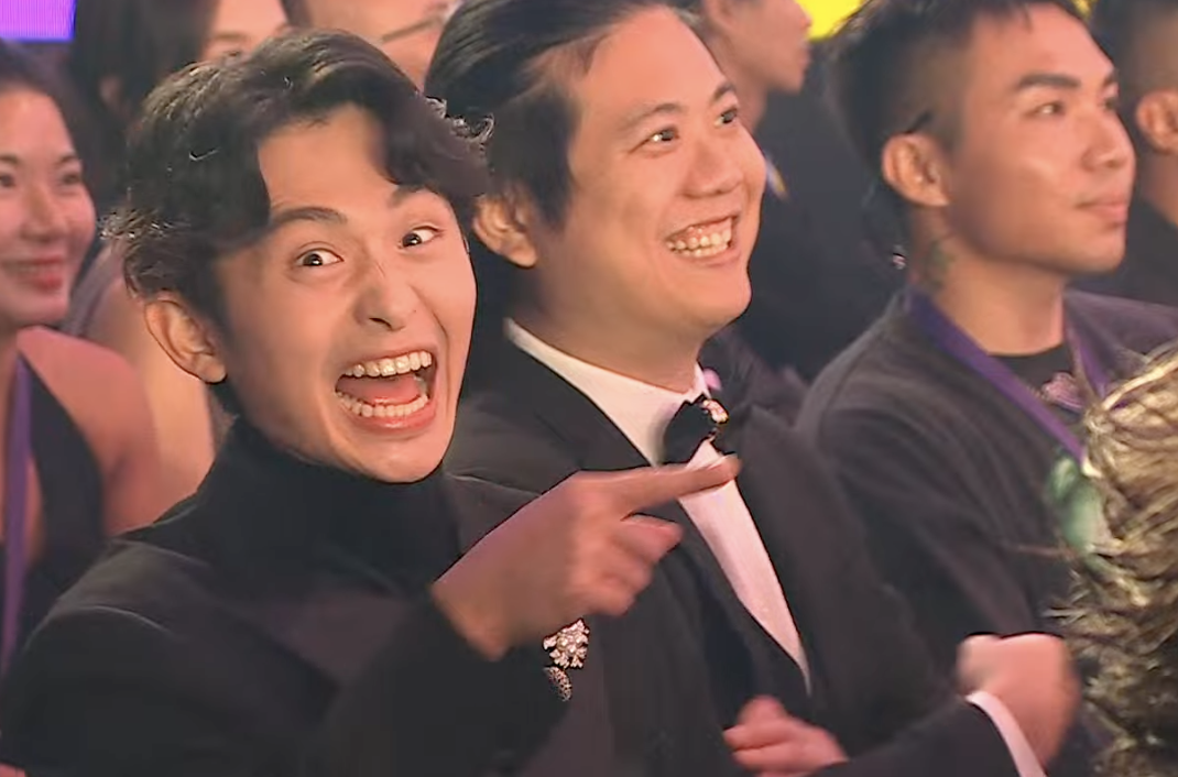 當「 The DoDo Men嘟嘟人」以「我們真的帶賀瓏去非洲了」奪下獲獎後,Ian對賀瓏的感謝讓博恩在台下反應超有趣。截自走鐘獎頒獎典禮YT