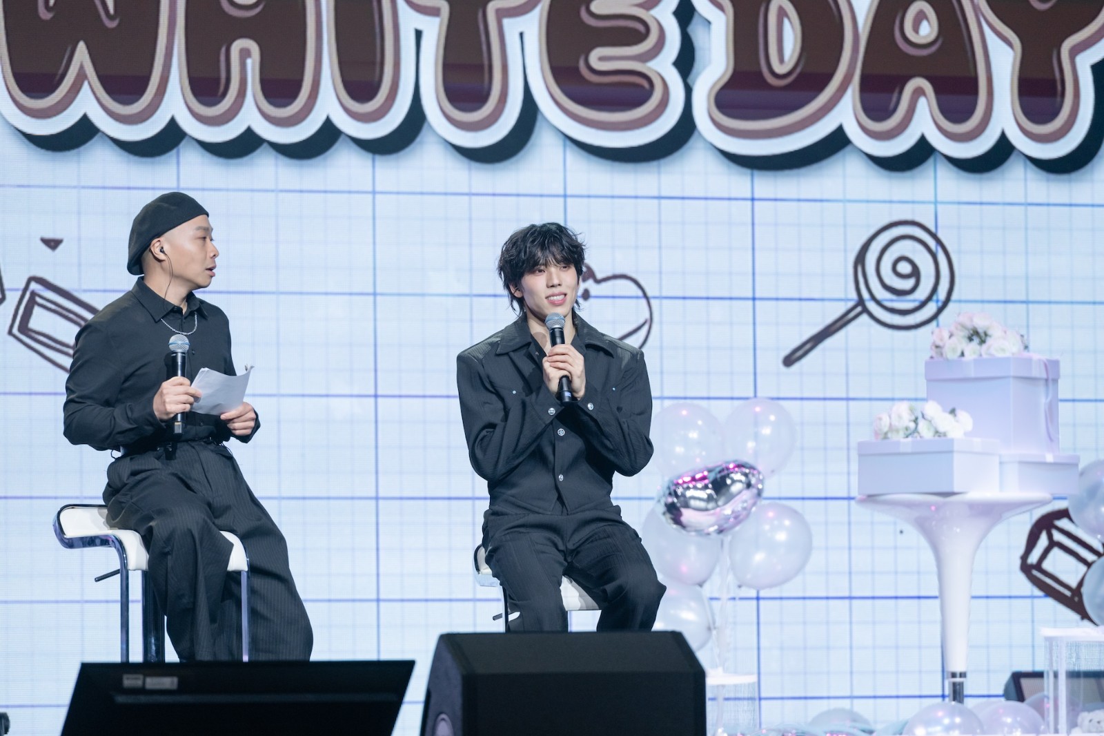 「WHITE Talk:東雨的告白」橋段除了回顧近期活動,還準備隨行杯、毛毯與行動電源等周邊抽送,連海報封面上的紅色毛衣都送,他邊介紹邊覺得怪,自嘲說:「我不是來賣東西的喔!我是歌手!」寵粉的他自己抽、自己唸、也親送,光送禮物就花了近30分鐘。