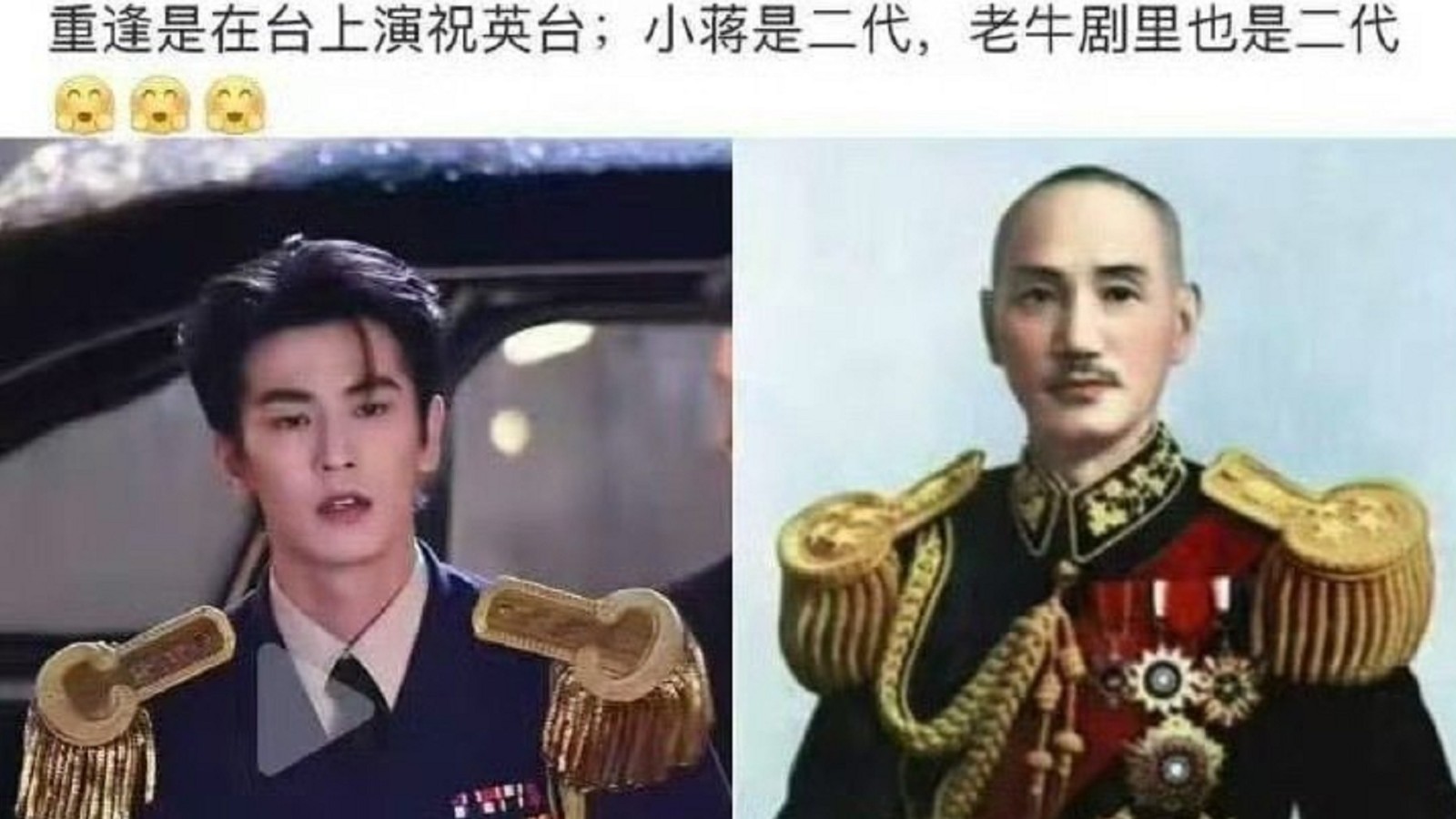 男星張凌赫的新劇《這一秒過火》被傳人設融入前總統蔣中正。取自微博