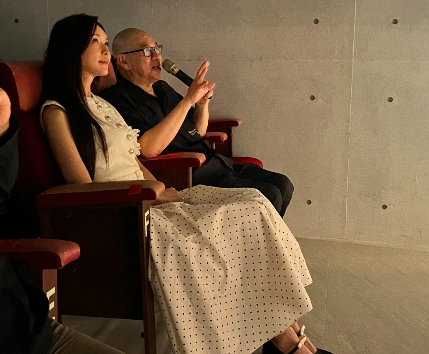 蔡明亮(後)帶林志玲體驗「小小電影館」。黃于珊攝