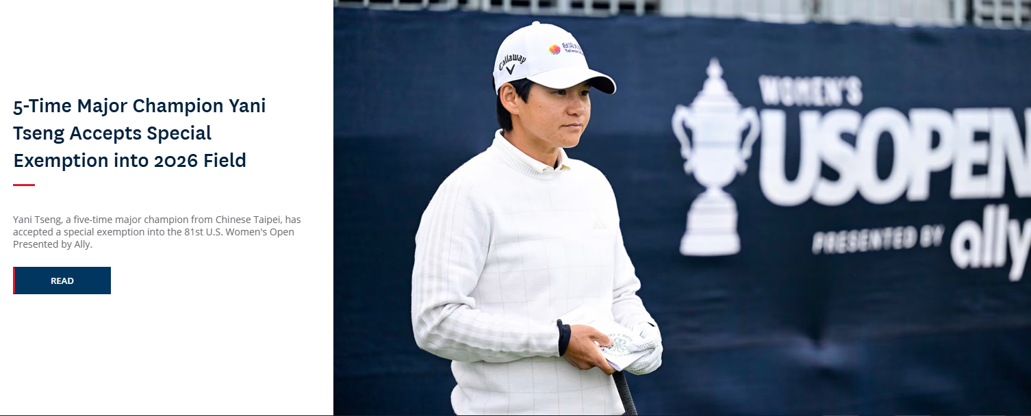 美國高球女子公開賽邀請曾雅妮參賽。翻攝賽事官網