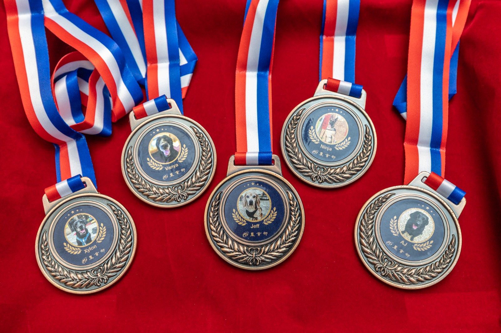 農業部長陳駿季頒發獎章給退役執勤犬。農業部提供
