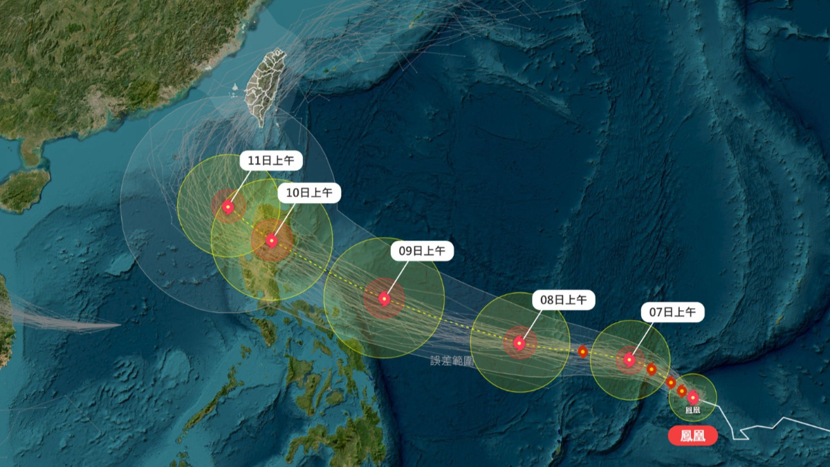 《台灣颱風論壇|天氣特急》綜合多數模式推測,鳳凰可能在週三(11/12)至週四(11/13)期間穿越台灣本島上空,若路徑不變,全台都將受到強風豪雨威脅。