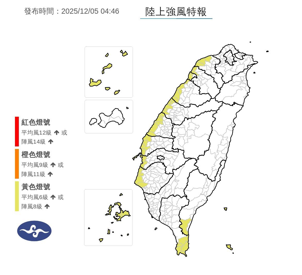 12/5陸上強風特報。氣象署提供
