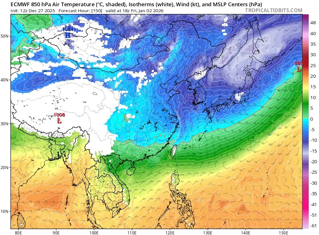 他也提醒,最快1月2日晚上就有機會迎接強烈大陸冷氣團,因為模式預報的一致性很高,有參考價值。