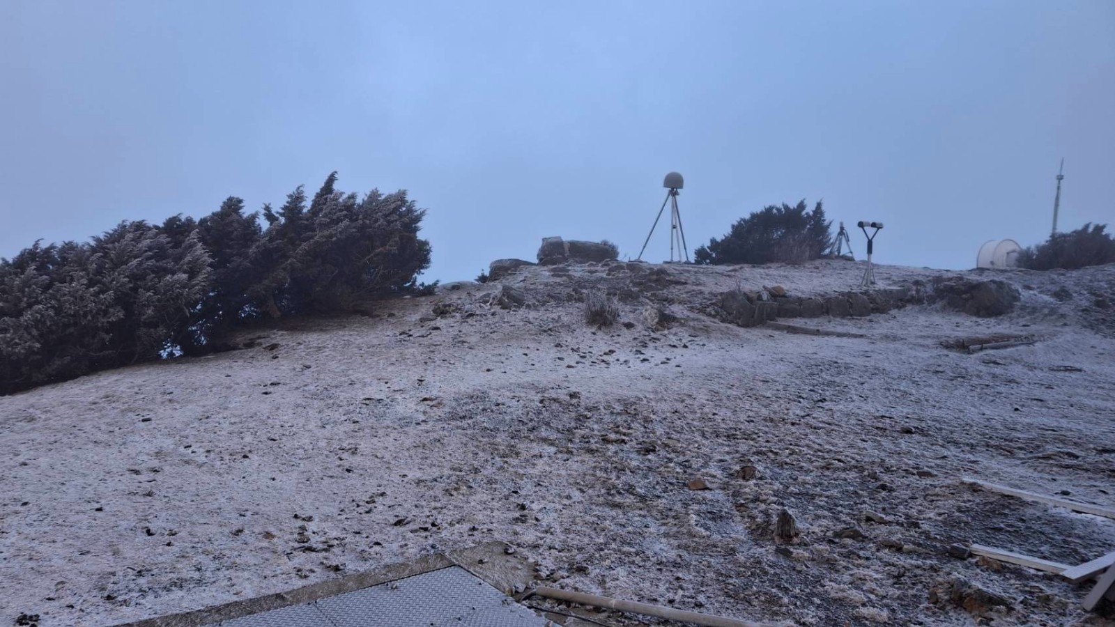2026.01.08玉山深夜有些固態降水,有霧淞。氣象署提供