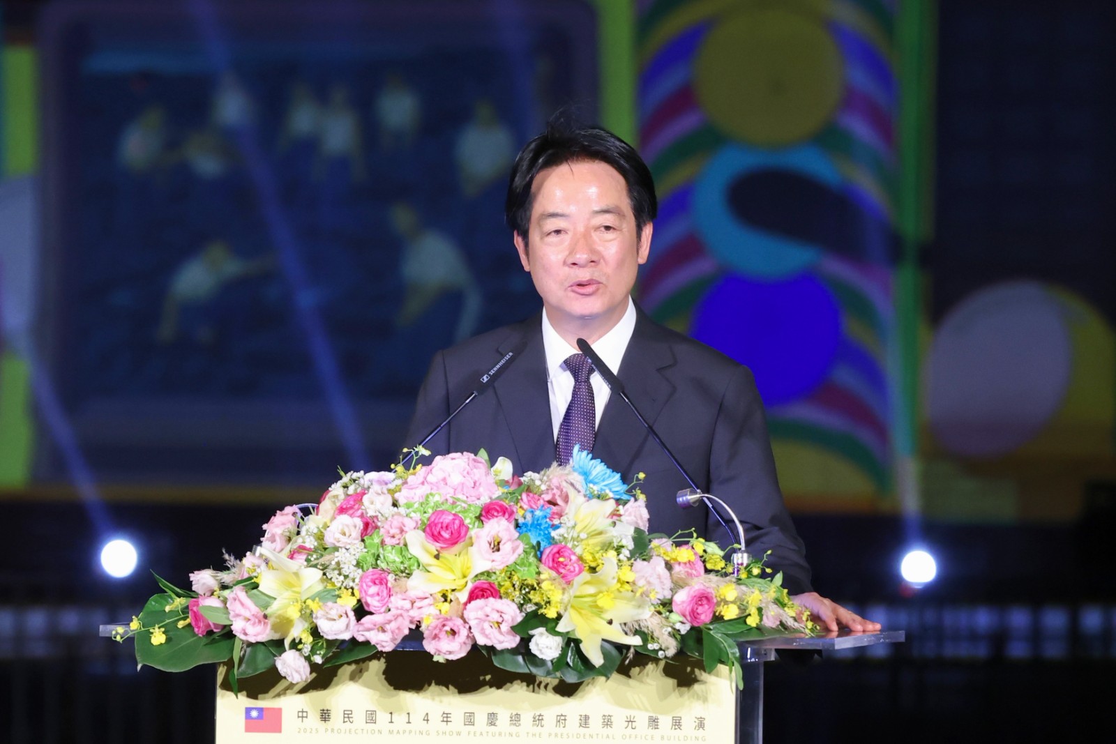 不要轉台 馬上回來-中華民國114年國慶總統府建築光雕展演點燈儀式,總統賴清德致詞。廖瑞祥攝