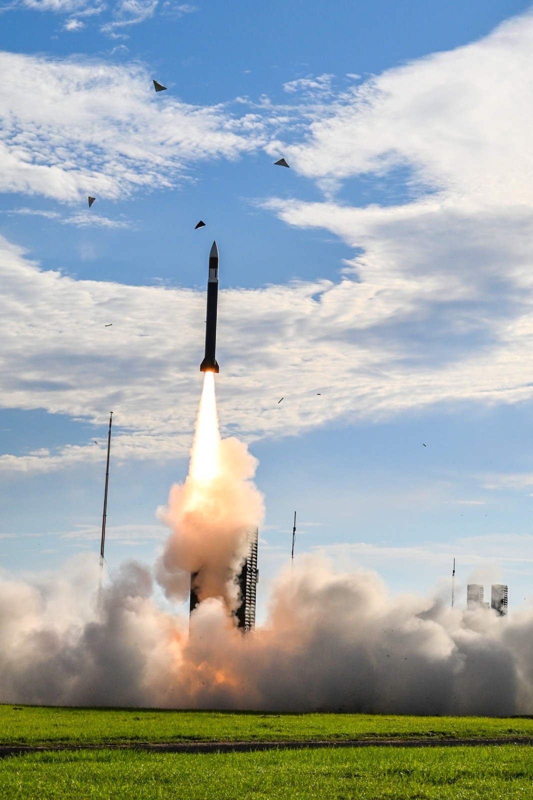 空軍防空暨飛彈指揮部2025.8.20凌晨於屏東九鵬基地順利完成實彈射擊天弓三型防空飛彈。空軍司令部