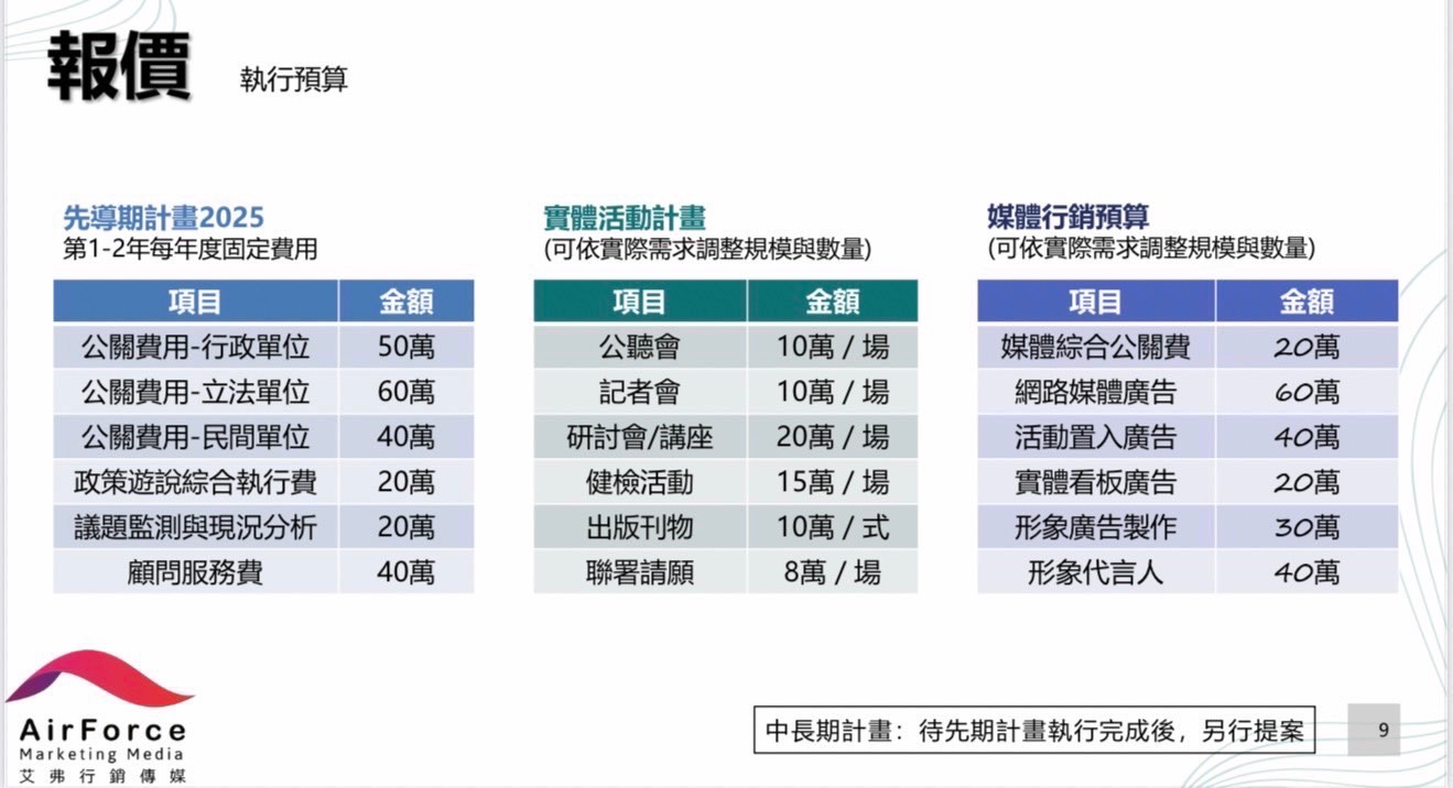 馬郁雯表示,掌握爆料,去年5月張凱維找了一家資本額只有10萬的行銷公司「艾弗行銷傳媒」合作,跑去向「台灣安進藥品有限公司」假提案、真索賄,企劃內容涉及立委職權,包含召開公聽會、記者會、溝通立法委員甚至承諾納入委員會臨時提案,張凱維獅子大開口向台灣安進藥品公司,企圖索取公關費顧問費等230萬,記者會、公聽會更是明碼標價一場10萬元。
