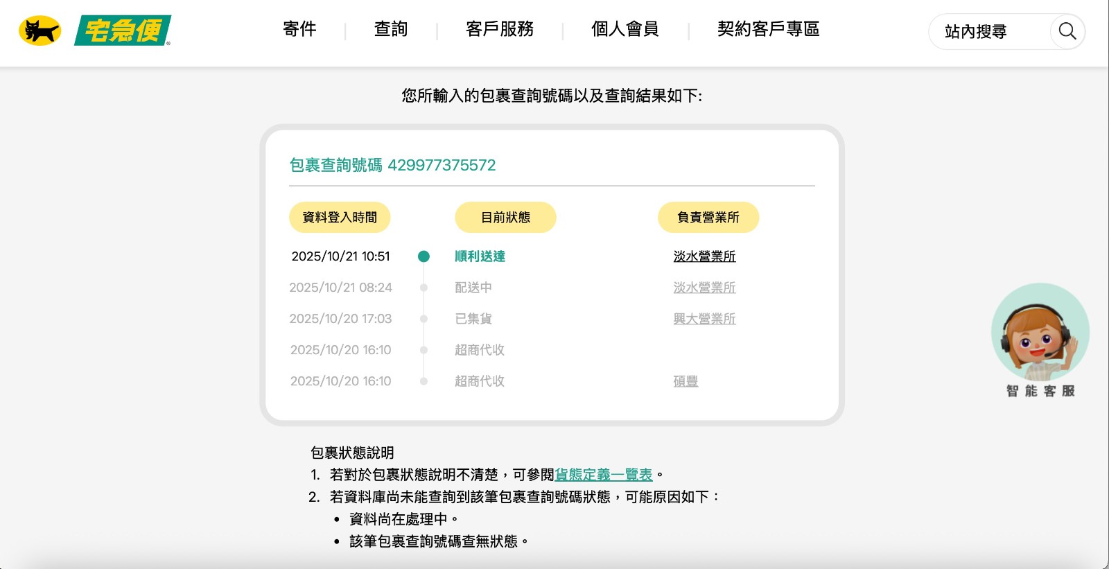 16:31出稿 19:43更新(黑貓宅急便網站配送時間)