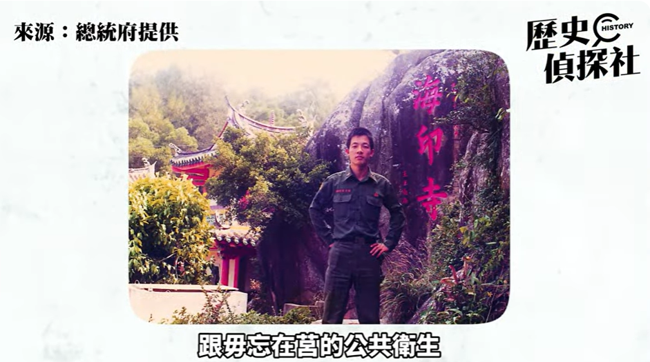 賴清德在影片中回憶,當年受訓結束、分發下部隊時抽到「金馬獎」,因為抽走外島籤還引來全場鼓掌。後來搭二十幾個小時的船,一路搖搖蕩蕩地從高雄壽山前往金門,沒想到一下船就接受「震撼教育」,當時的指揮官宋心濂對新兵訓話,一訓就是4個小時。