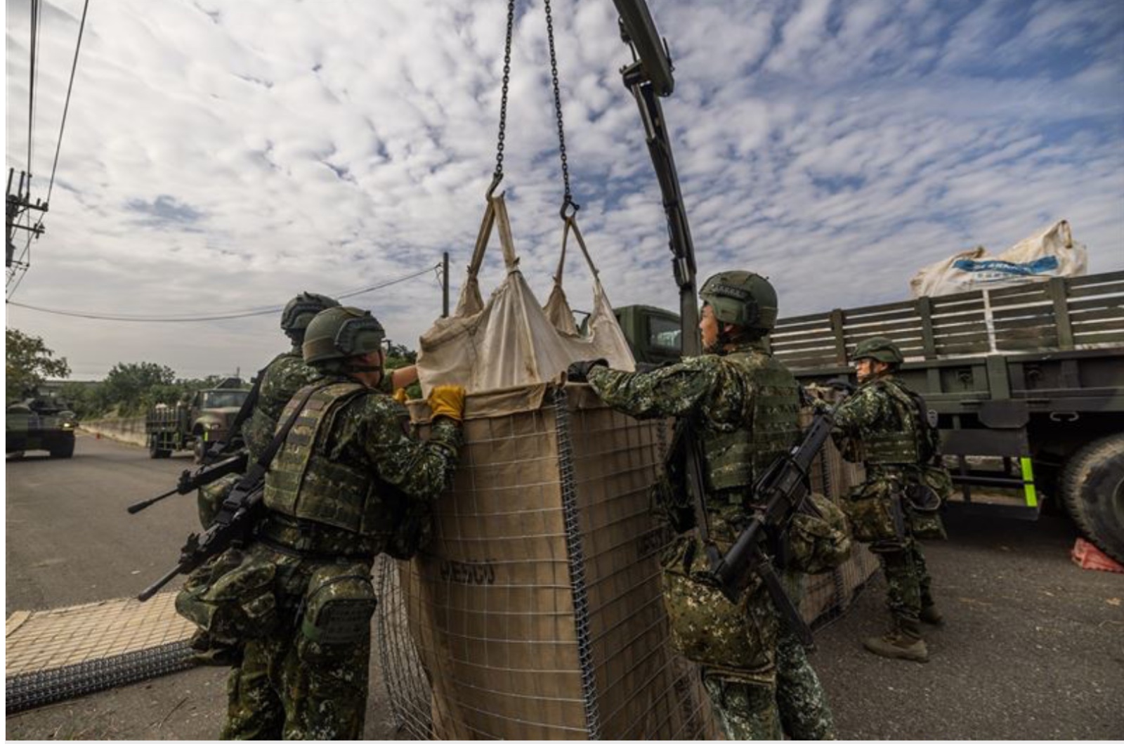 陸軍機步234旅在陸勝一號實兵對抗演練中部署機動阻絕設施(HESCO)。青年日報