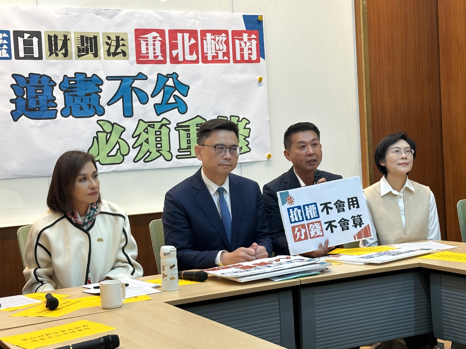 藍白上週再修財劃法,行政院長卓榮泰宣布「全面迎戰」,民進黨立委賴瑞隆今天上午(11/19)舉行「藍白財劃法重北輕南 違憲不公必須重修」記者會,11位南高屏立疾呼立院重修財劃法,避免重北輕南持續擴大。民進黨高雄市長、台南市長擬參選人全員到齊,連原本未列在出席名單的綠委陳亭妃都現身,引起關注。