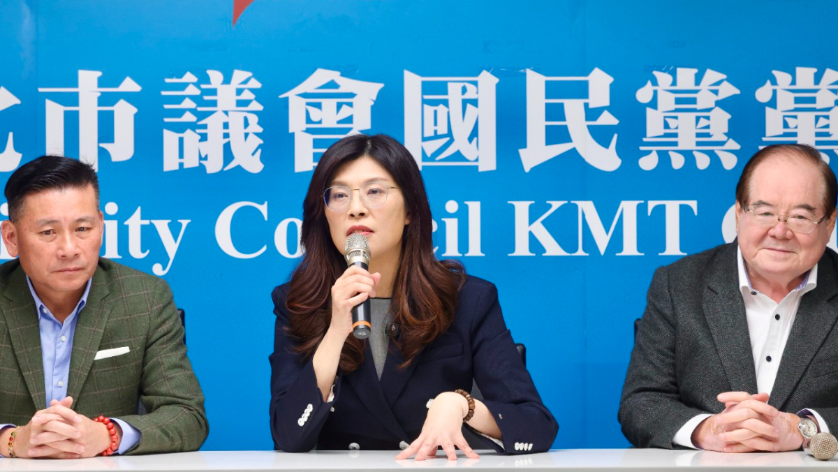 國民黨主席鄭麗文昨出席台北市議會黨團大會,左為戴錫欽、右為李乾龍。廖瑞祥攝