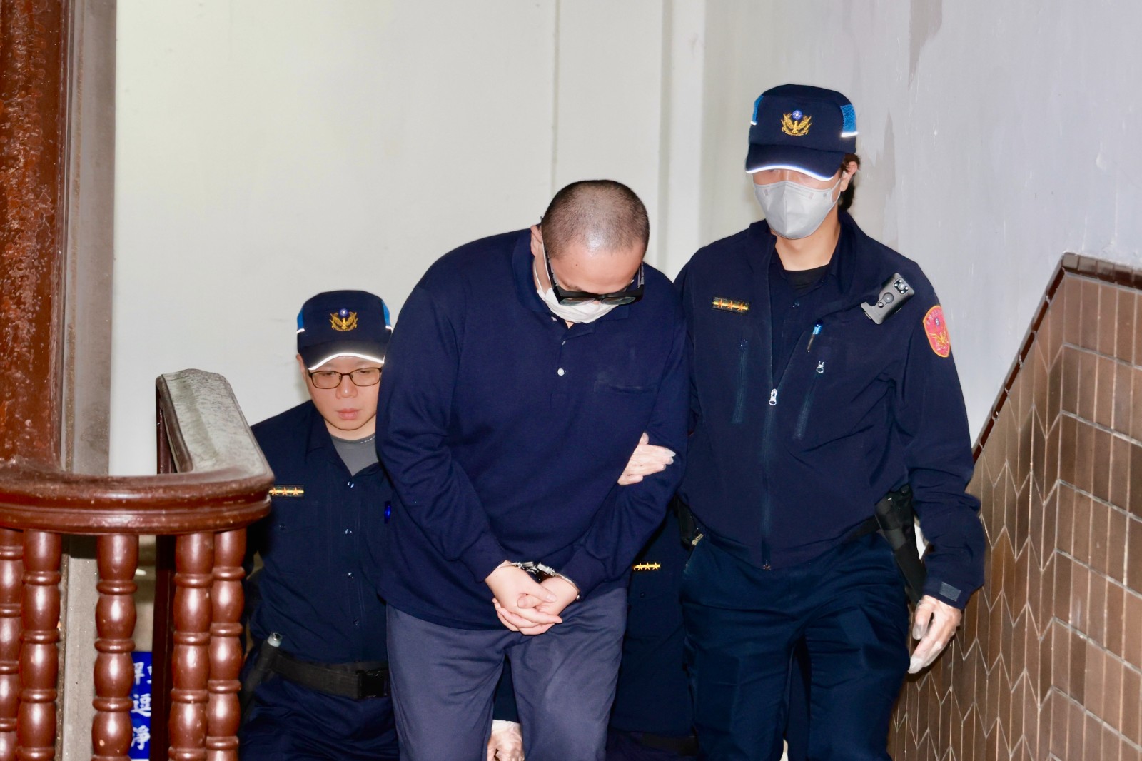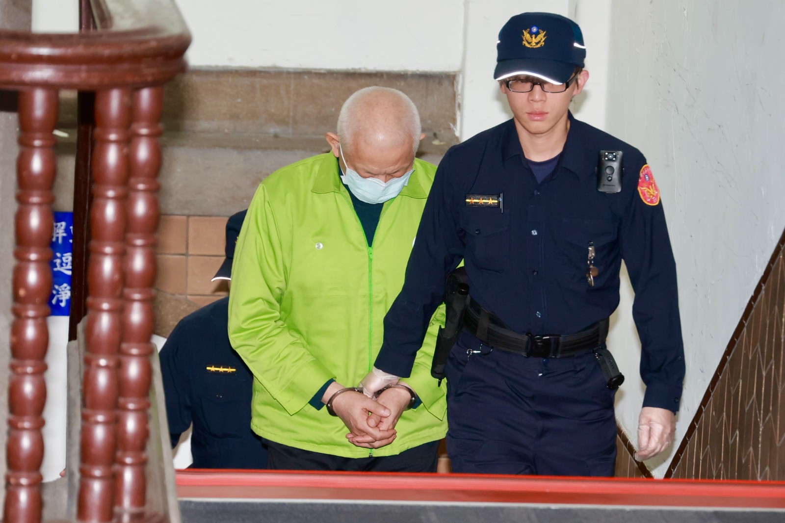 黃取榮今天到高院出庭,這次他一見到媒體馬上低下頭,記者再次問他「為何賣台」,這次他沒作任何反應,隨法警轉身步上樓梯。
