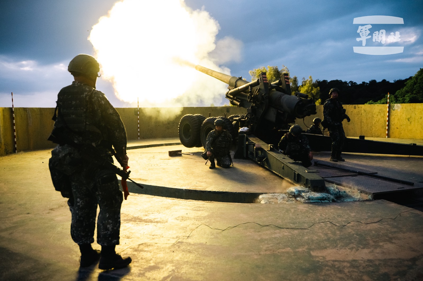 國軍進口火藥原材料產製各項彈藥武器。資料圖為陸軍馬祖防衛指揮部南竿守備大隊混砲連於2024.7.24「漢光40號演習」實兵演練展開航道封鎖實彈射擊,以155公厘加農砲,結合防衛作戰構想,對目標區敵船團進行射擊,遏阻敵軍進犯。