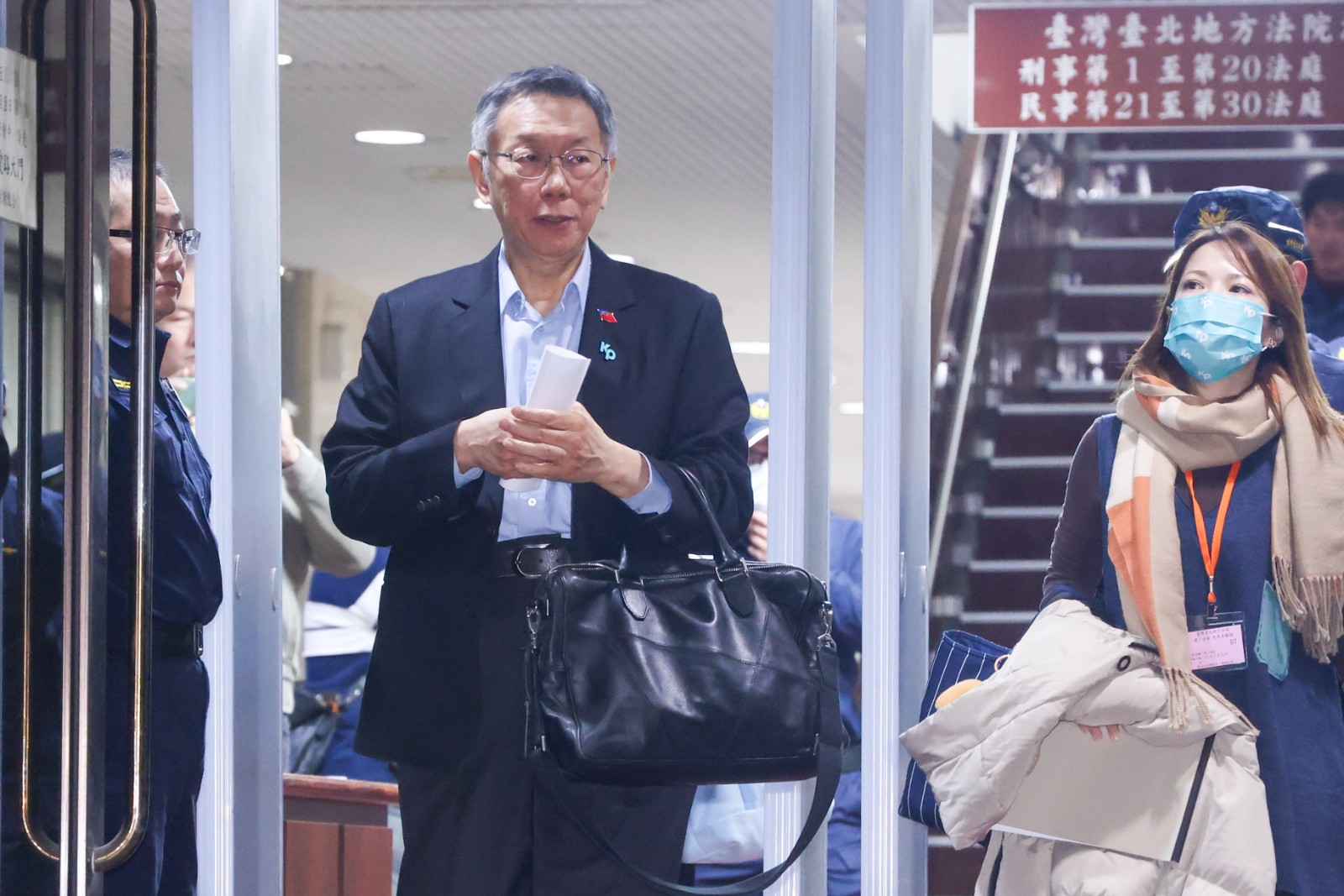 今日時間不夠柯文哲和辯護律師答辯完,合議庭安排明日上午續戰。廖瑞祥攝