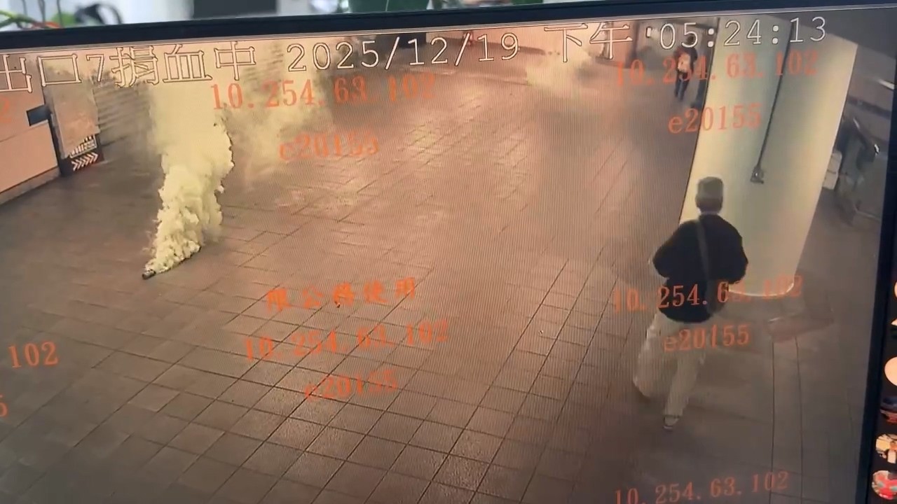 歹徒在北車連續丟了至少五顆煙霧彈。翻攝畫面