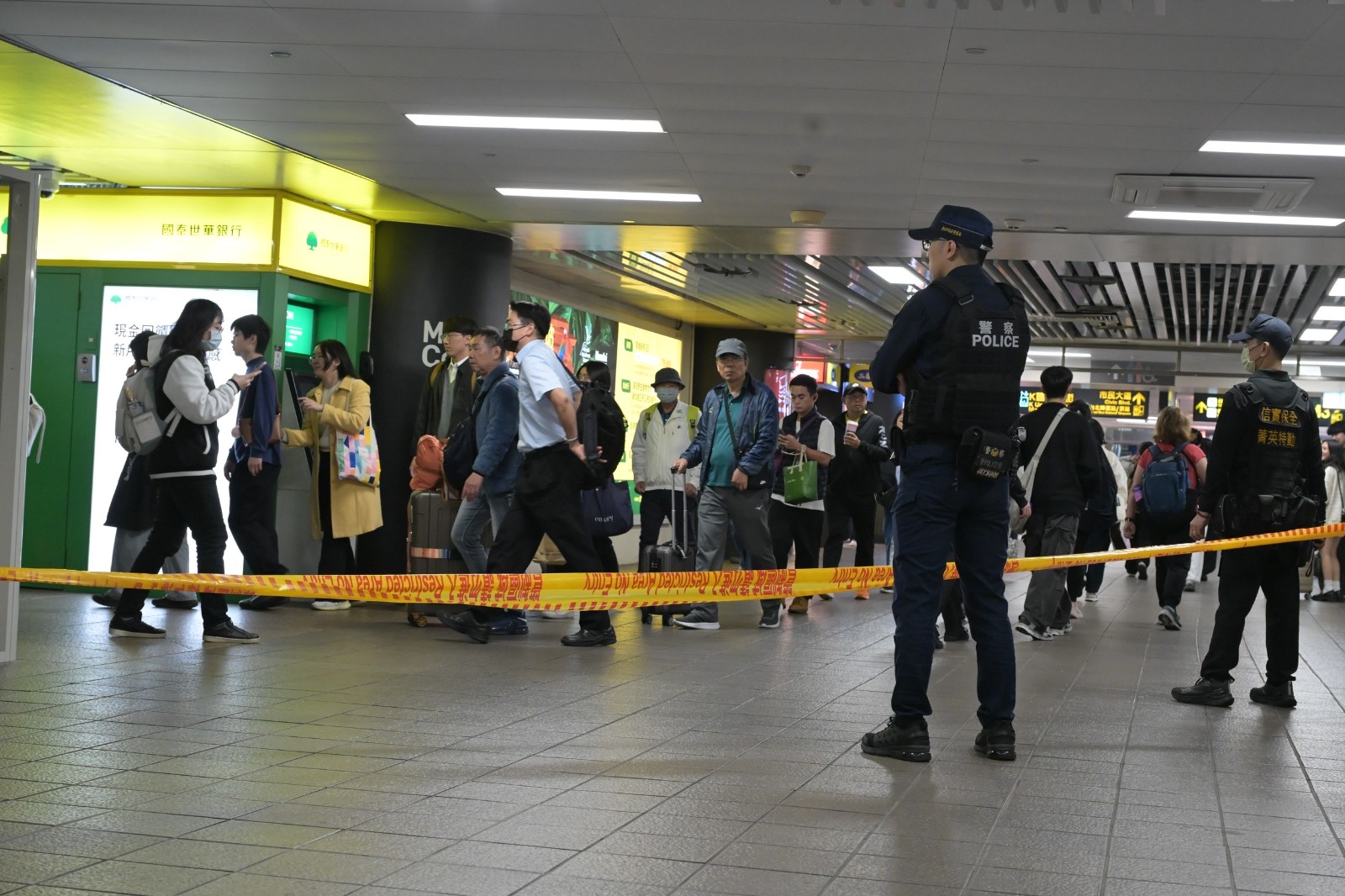 北車、中山站發生攻擊事件,現場拉起封鎖線。讀者提供