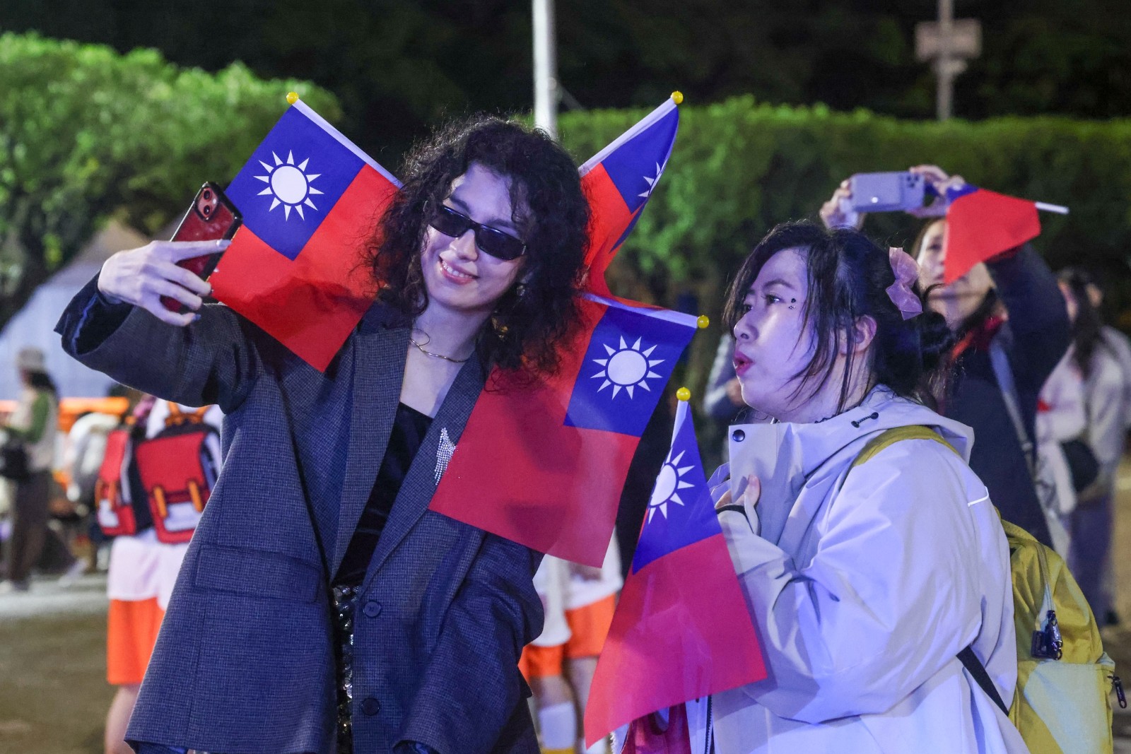 元旦升旗典禮,鄭麗文出席自拍。廖瑞禮攝