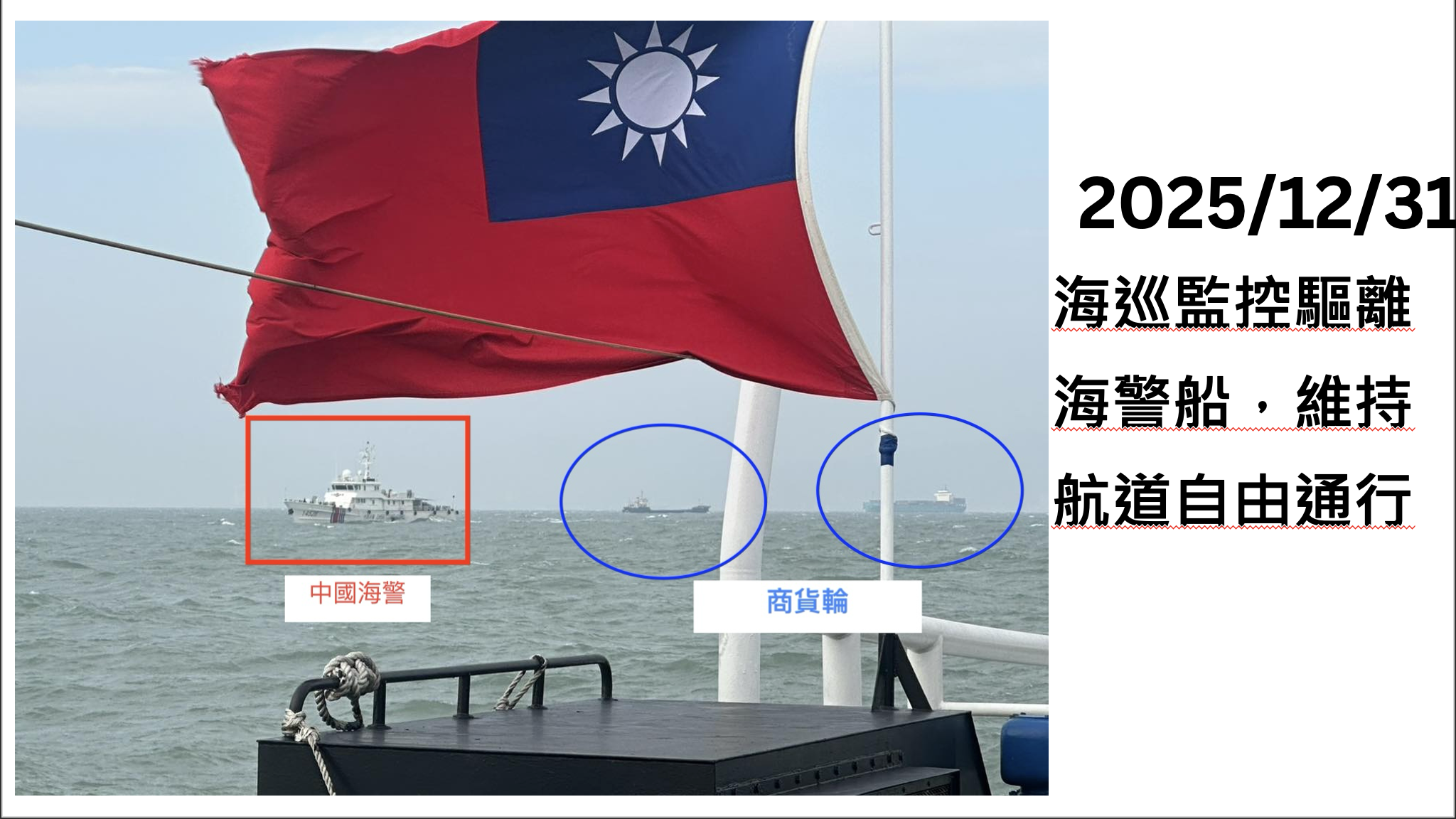 中國對台軍演「正義使命-2025」第三天,台灣海巡署2025.12.3艦艇驅離監控中國海警船,往來台灣海峽的商貨輪如常航行與進、出港,中國未能「封控」台灣周邊海域。照片為海巡署提供