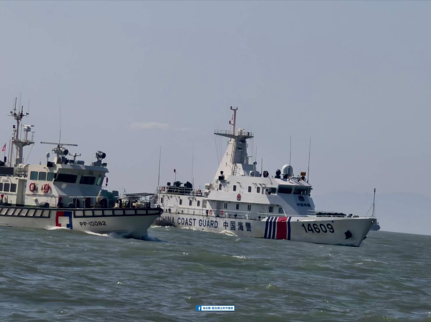 中共解放軍東部戰區29日突發布在台灣周邊實施聯合軍演,我國海巡署派出14艘艦艇以「1對1」方式監控驅離。翻攝海巡署臉書