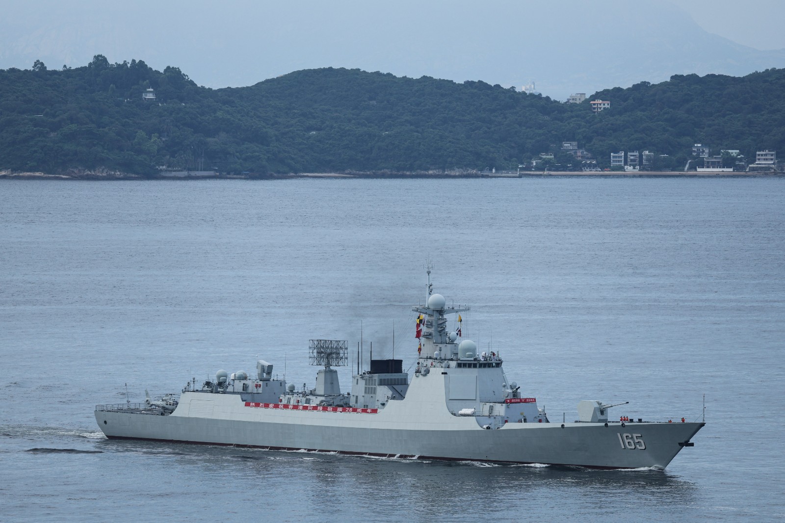 中國海軍山東艦航空母艦山東艦中的飛彈驅逐艦湛江艦(舷號165)。路透社