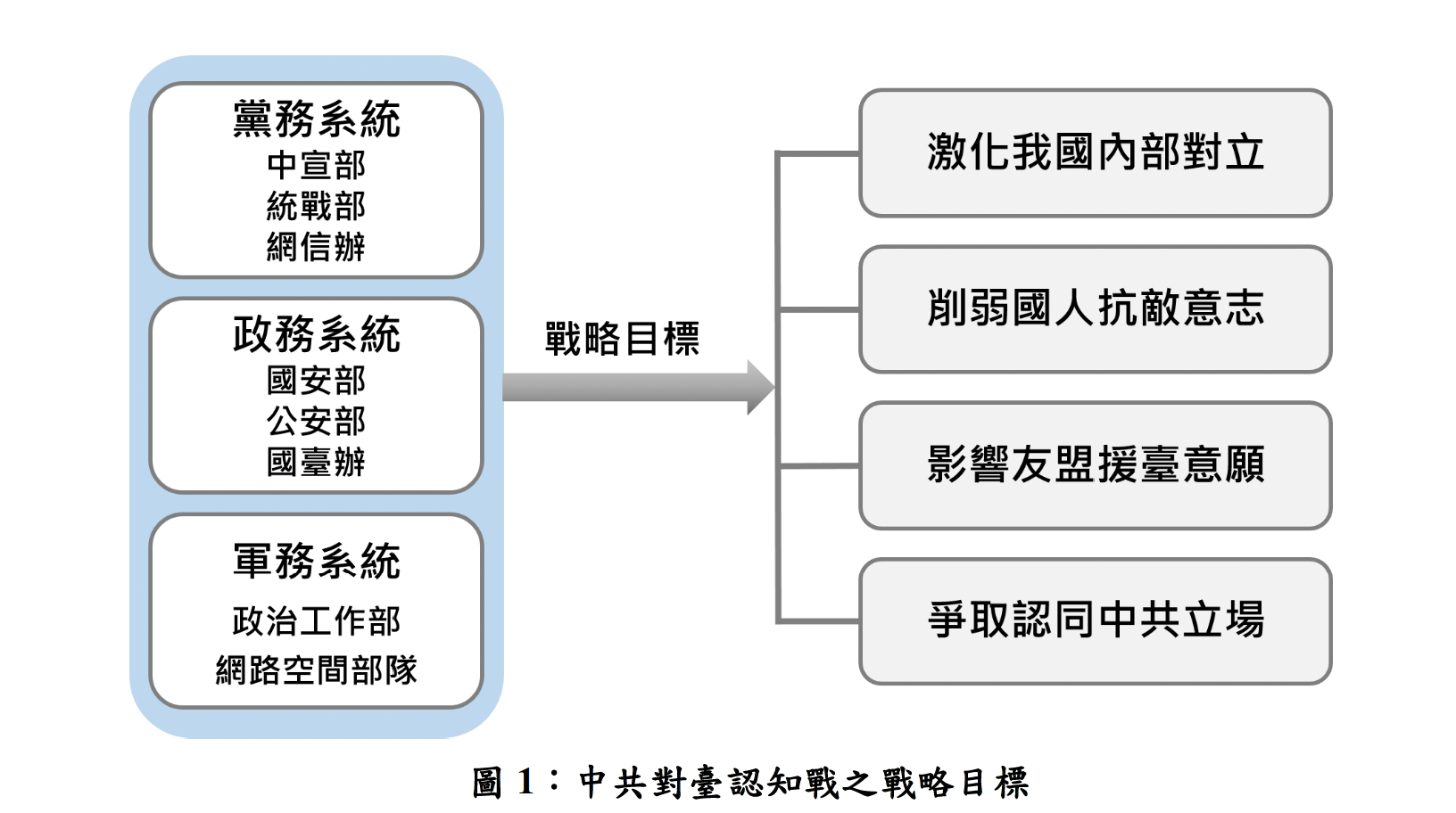 國安局指出,中共持續對台灣進行認知作戰,選擇我國重要時事加強炒作,期達到「激化我國內部對立」、「削弱國人抗敵意志」、「影響友盟援臺意願」及「爭取認同中共立場」等戰略目標。截自國安局報告