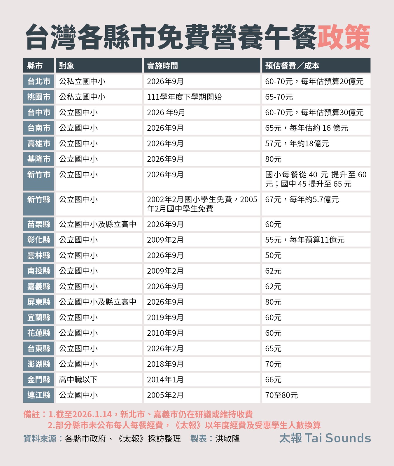 台灣各地方政府陸續宣布學校營養午餐全面免費。高市府教育局提供