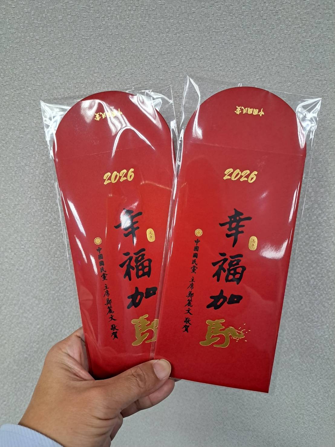 農曆新年將至,朝野各政黨、政治人物自去年底起,已陸續發出各自版本春聯,祝民眾馬年吉祥,也為自己宣傳。沿襲慣例,國民黨後來居上,明天也將發表由黨主席鄭麗文署名,寫有燙金的「幸福加馬」馬年春聯與紅包袋。