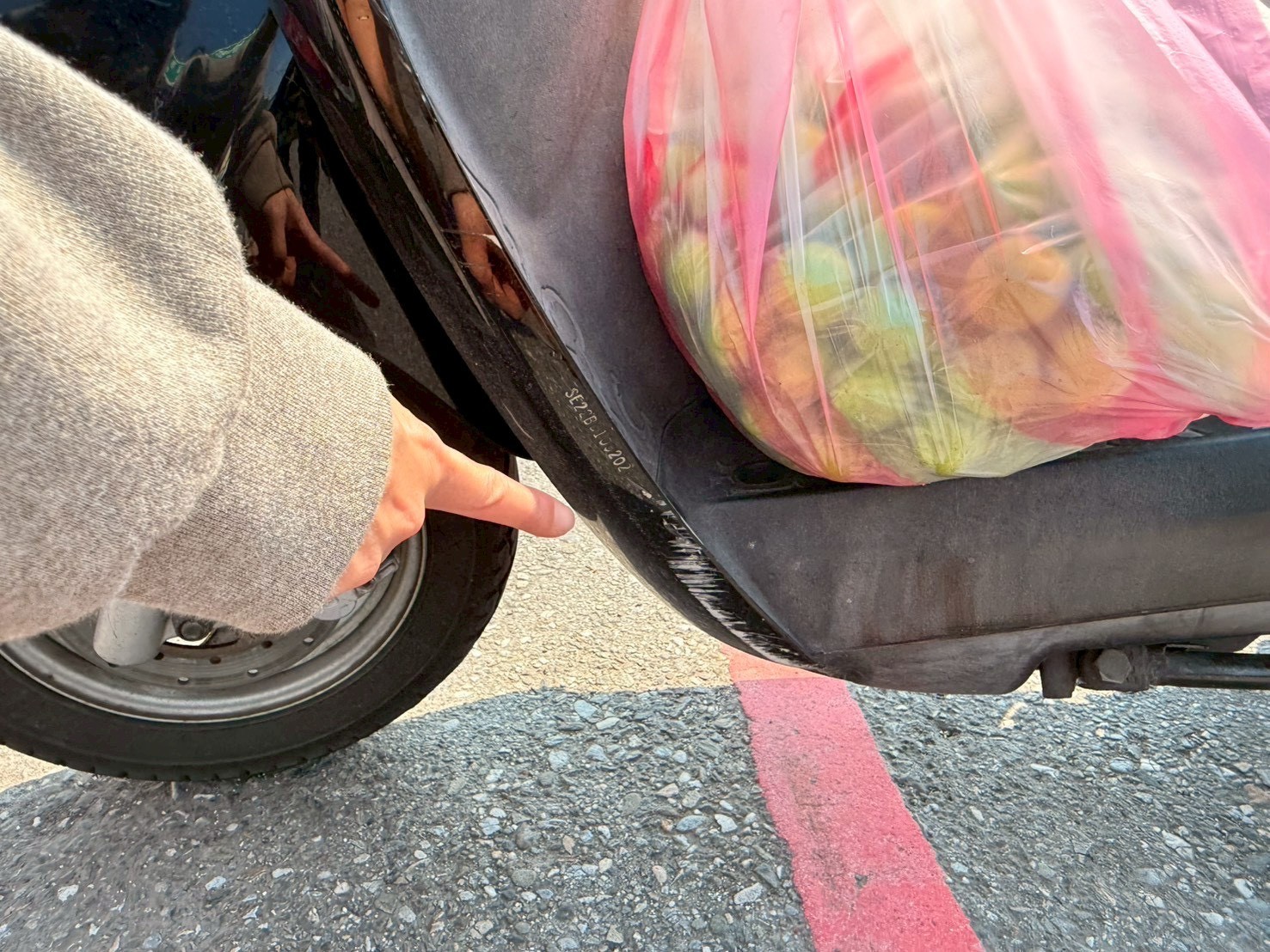 吉安鄉長游淑貞所駕駛的車有刮痕。讀者提供