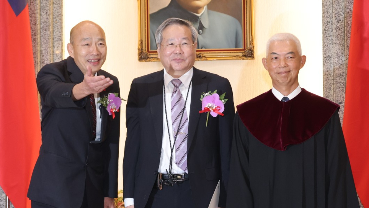 立法院長韓國瑜、大法官尤伯祥(右)出席民眾黨許忠信(中)宣誓就職立法委員。李政龍攝