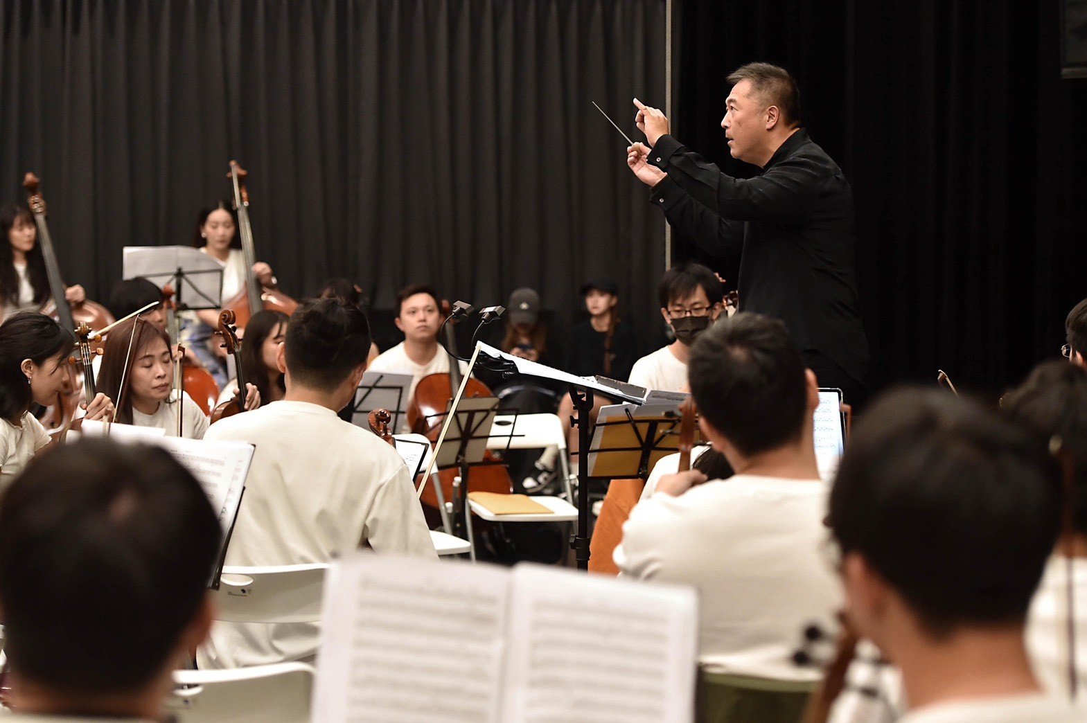 「2025台灣大哥大日月潭花火音樂會」進入倒數時刻,由藝術總監江靖波帶領、75位音樂家組成的「樂興之時管絃樂團」,緊鑼密鼓彩排25首中西流行曲目。