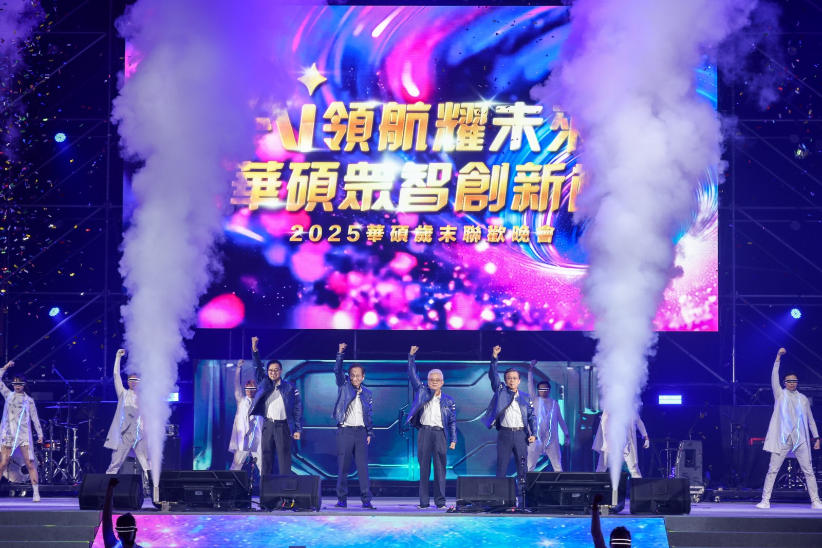 今年華碩尾牙晚宴由黃豪平、蔡尚樺擔綱主持,開場表演透過震撼的科技特效,將舞台化為「華碩艦隊」,帶領全場航向浩瀚無垠的 AI 宇宙。